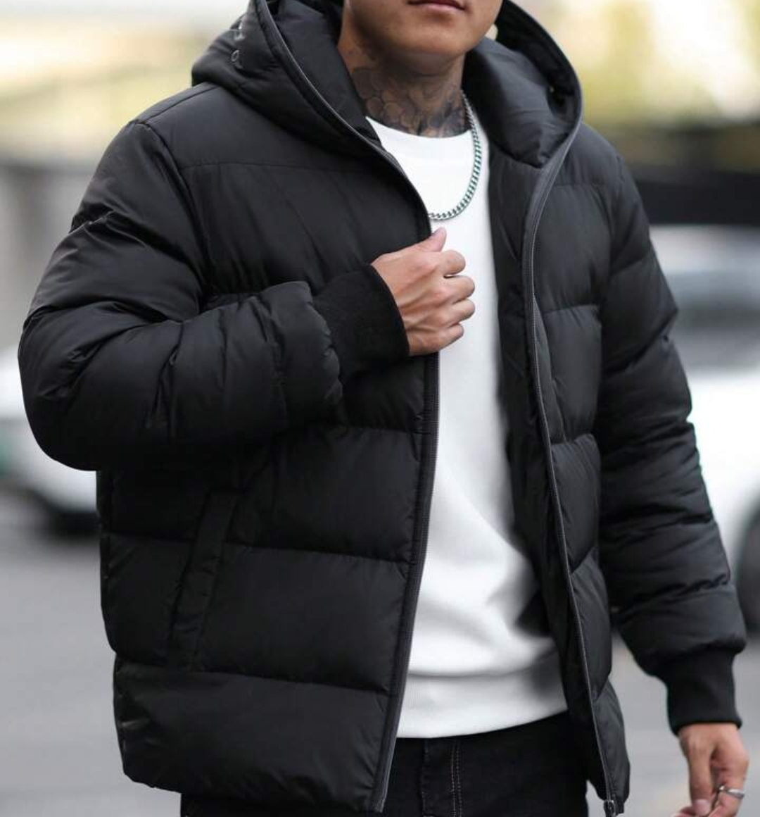 Jaqueta Masculina Puffer Preta com Capuz – Estilo e Proteção para o Inverno